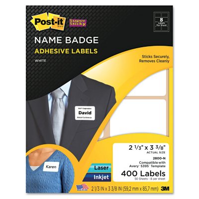 Amazon.com : Post-it Super Sticky Removable Full Sheet Labels, 8.5 x 11 ... Post-it Super Sticky Removable Identification Labels stick securely and remove cleanly. Great for binders, shelves, containers and much more. Write labels by hand or print with laser and inkjet printers. For use with popular software packages and temp From the Manufacturer Shop name tag labels | W.B. Mason name tag labels at W.B. Mason Great selection, great prices, business and residential delivery available. ... Teacher Created Resources Superhero Name Tags/Labels - Multi-Pack. Delivers in 7-10 Business Days. TCR5587. $5.99 /PK. QTY. Quantity. ... DYMO® Self-Adhesive Name Badge Labels, 2-1/4 x 4, White, 250/Box. Next Business Day Delivery ...