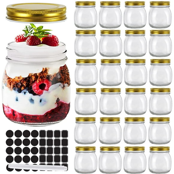 Glass Jars with Gold Lids, Mini Mason Jars for Gifts, Crafts, Wedding, Spice, Extra Chalkboard Labels, Tags String